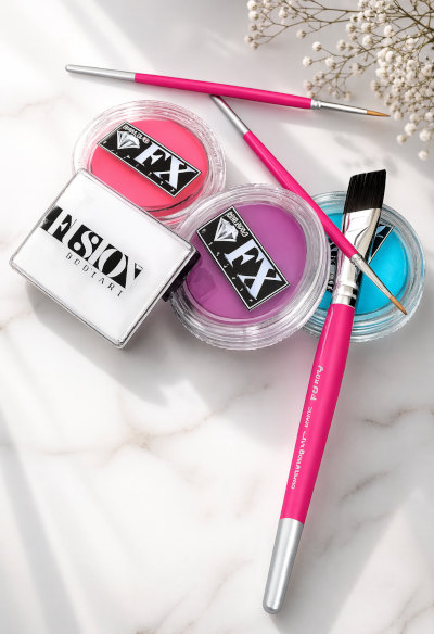 Pro malbu na tváře a tělo použiváme profesionální barvy, které jsou dermatologicky bezpečné, určené pro facepainting i bodypainting. Jsou vyráběny v souladu s přísnými kosmetickými normami EU a FDA a splňují požadavky na bezpečnost (např. ASTM D-4236), přičemž použité pigmenty podléhají kontrolám kvality a zdravotní nezávadnosti. Barvy jsou netoxické, hypoalergenní, bez parfemace, parabenů či živočišných složek a nejsou testovány na zvířatech . Díky šetrnému složení jsou vhodné pro použití na pokožku dětí i dospělých.